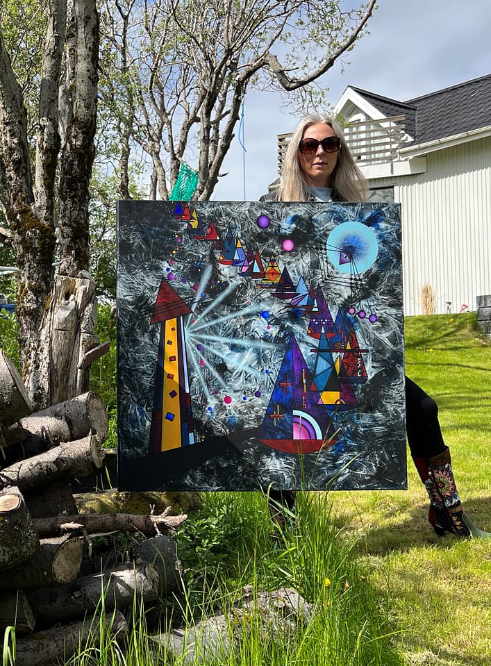 The chapter was sparked by vivid series of dream visions from her inner muse with messages from the Art Goddess beyond, awakening a long-dormant creative spark. These recurring invitations urged her to play with colour and form. What began as a tentative first painting surprised her deeply: the joy was overwhelming, a true rebirth filled with profound gratitude that seemed to flow through every cell. Painting became essential – an irreplaceable source of vitality and childlike wonder. And now, she cannot imagine a life without it; the studio is where her spirit breathes freely.